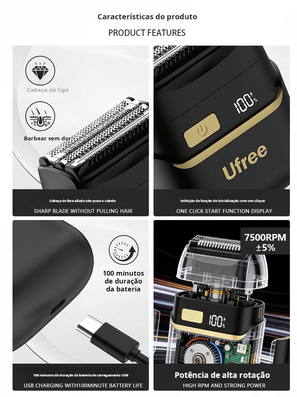 🪒 Máquina de Barbear Elétrica – 3 Lâminas